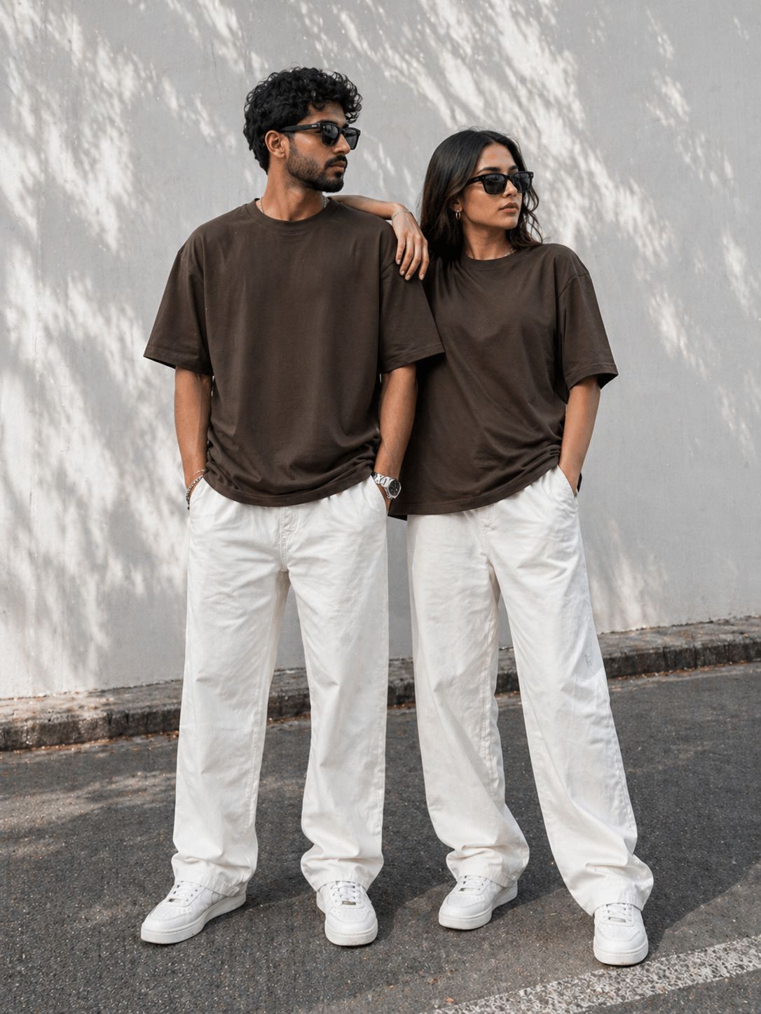 Snazzy couple’s oversized t-shirts